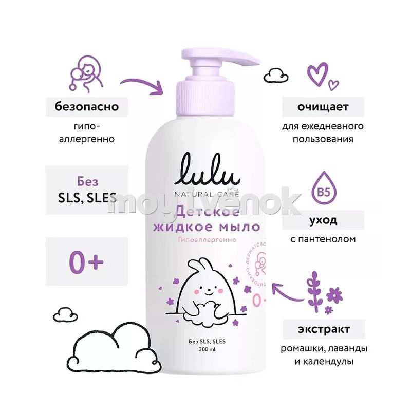LULU Детское жидкое мыло,с экстрактами ромашки, календулы, лаванды и пантенолом
