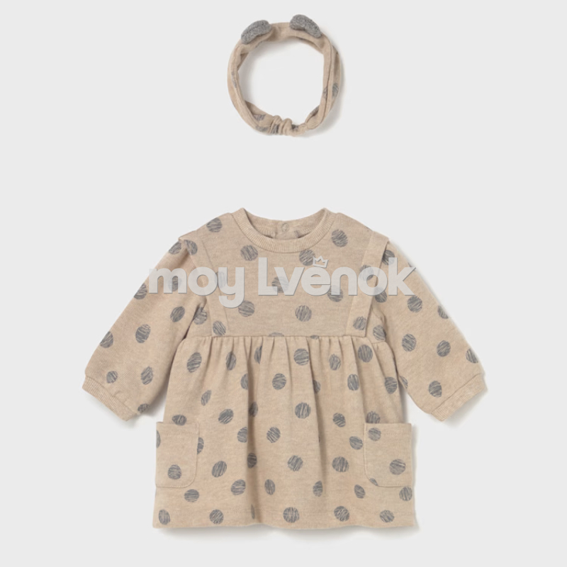 Mayoral 2807/14 Платье с длинным рукавом/повязка на голову (бежевый)