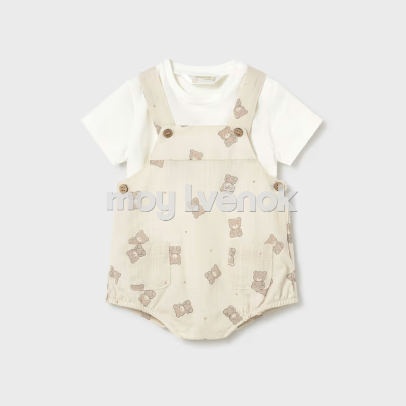 Mayoral Комплект футболка и полукомбез, молоч/беж. 1621/32