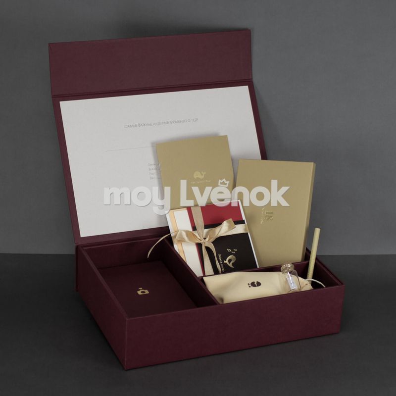 MEMORY BOX Большой подарочный бокс для новорожденного. Бордовый