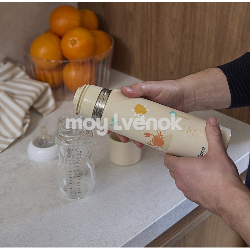 Miniland Детский термос для жидкостей Thermy Ocean, 500 мл,Crabsy, бежевый/крабы