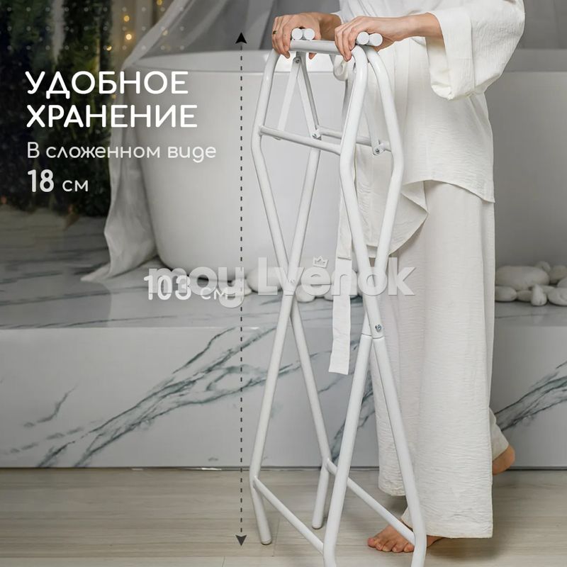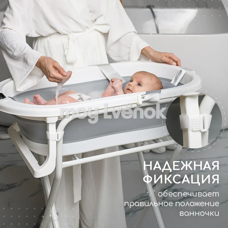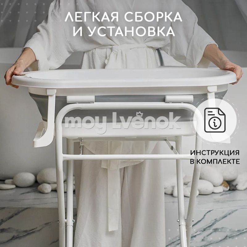 - Подставка подходит для различных моделей ванночек, легко складывается и перемещается при необходимости.