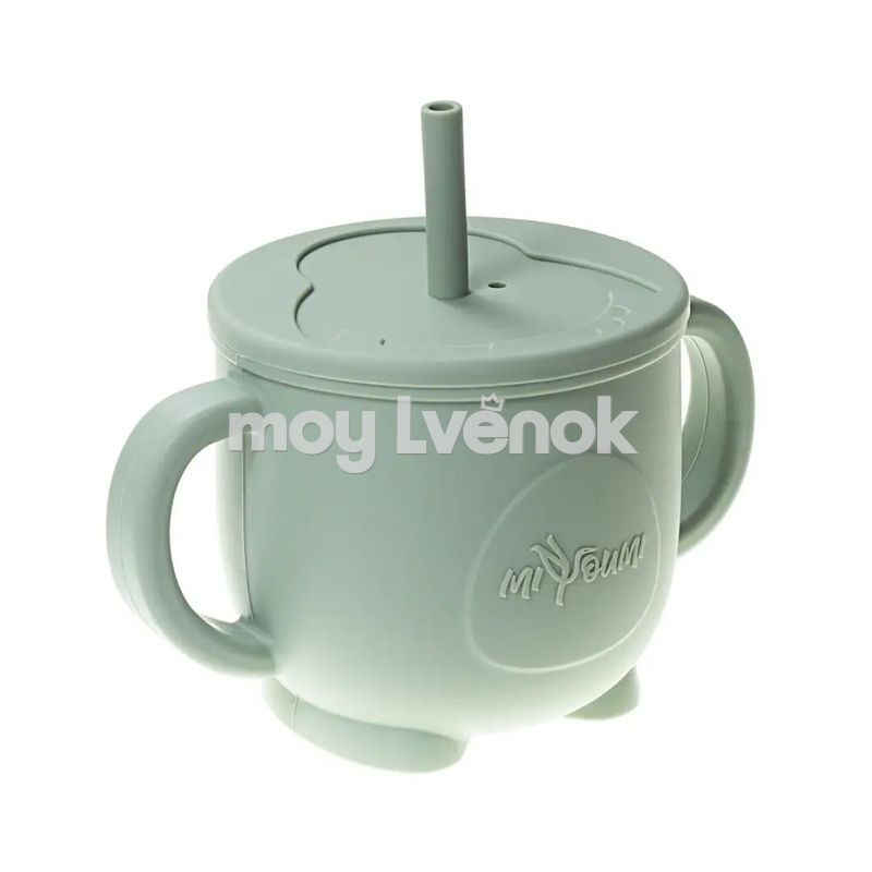 Miyoumi Силиконовая чашка-поильник с силиконовой трубочкой, Шалфей P0002/250