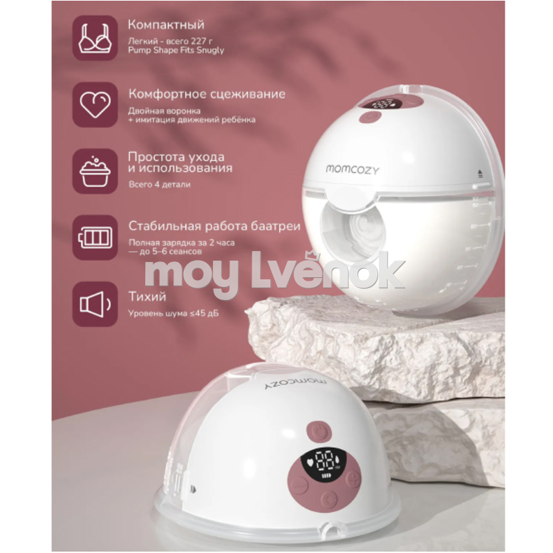 Вес всего 230 г — на треть меньше, чем у стандартных моделей. Компактный и бесшумный молокоотсос Momcozy M5 не ограничивает движения и остаётся практически незаметным. Сцеживание возможно в любой обстановке — за рулём, на работе или во время отдыха.