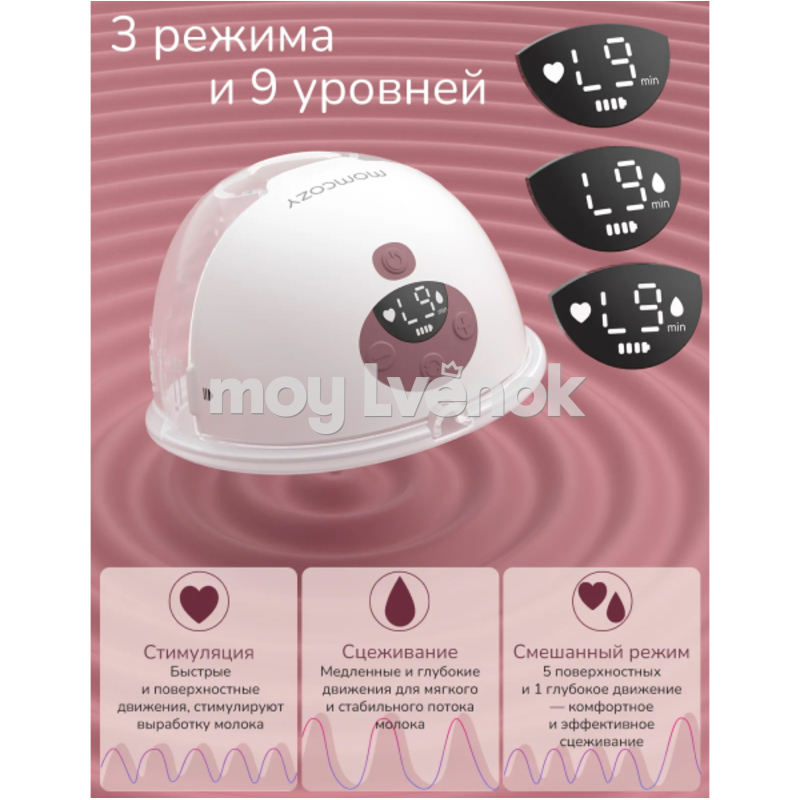Технология микровибрации мягко стимулирует лактацию, помогая получать больше молока при минимальных затратах времени и энергии. Три режима (стимуляция / сцеживание / смешанный) и девять уровней интенсивности позволяют подобрать индивидуальные настройки, а функция умной памяти сохраняет выбранные параметры.