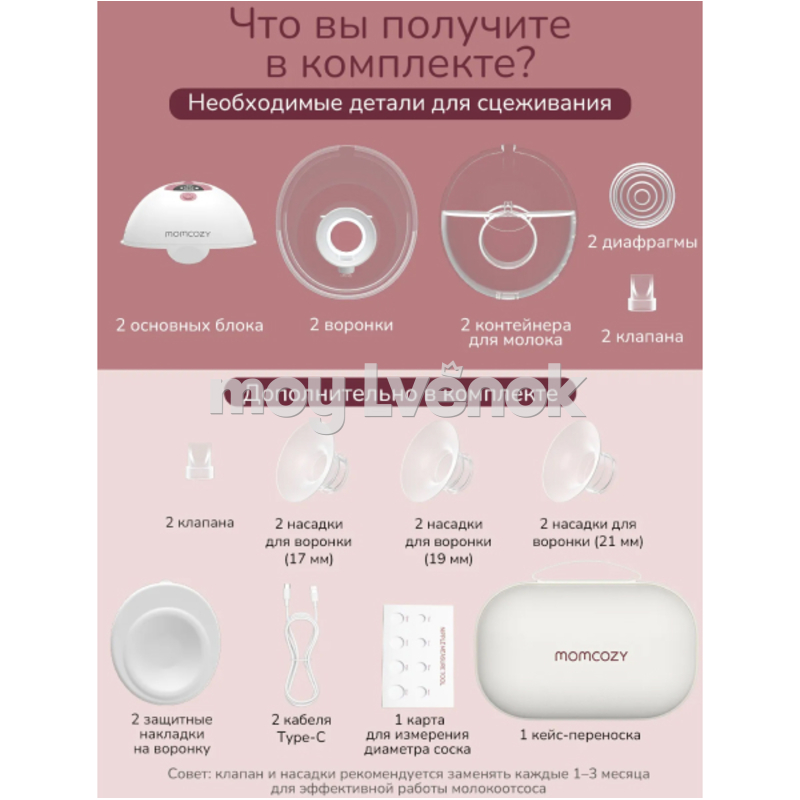 Momcozy Беспроводной портативный электрический молокоотсос M5, уютный красный, 2 шт. 69832
