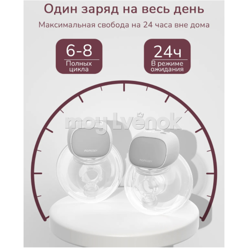 Ёмкость батареи обеспечивает до 180 минут автономной работы — это 5-6 сеансов сцеживания в течение дня. Функция автоотключения каждые 30 минут делает процесс безопасным и удобным. Быстрая зарядка через порт Type-C экономит время.