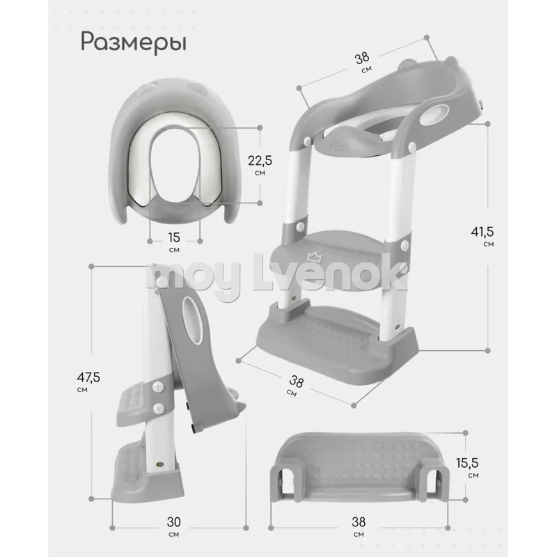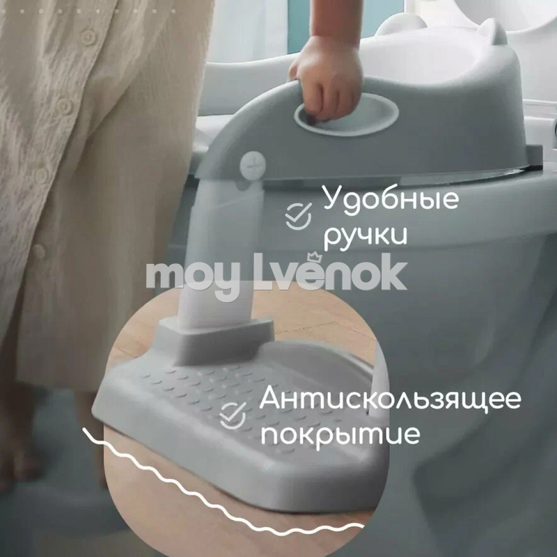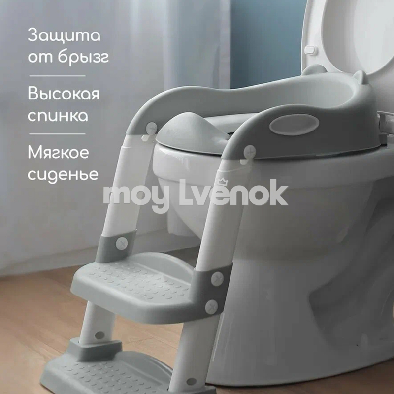 Благодаря лестнице дети могут легко садиться и вставать с унитаза без помощи взрослых. Накладка также предназначена для детей с ограниченными возможностями и инвалидов, благодаря поручням и специальному дизайну. Мягкая поверхность делает использование унитаза более приятным и удобным для детей и взрослых.