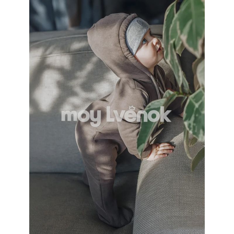 - Стильный и мягкий комбез с закрытыми ножками и капюшоном обеспечит вашему малышу тепло в прохладные дни.