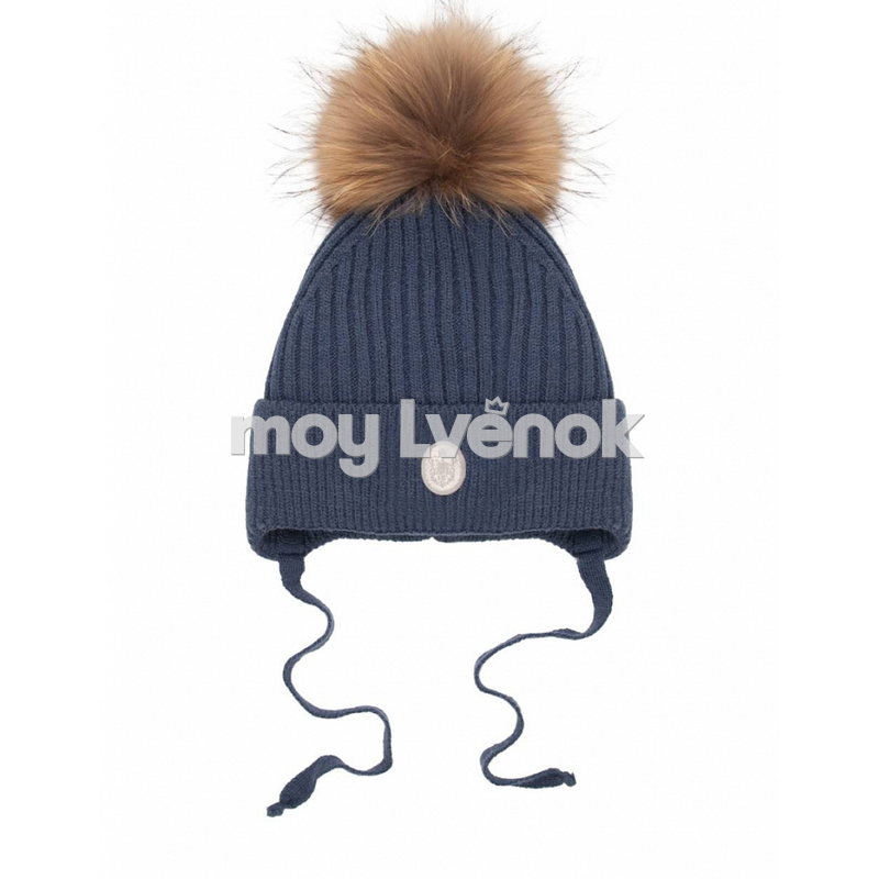 НаследникЪ Выжанова Шапка зимняя с меховым помпоном на завязках, цв. джинс НВ1031-ДЖ
