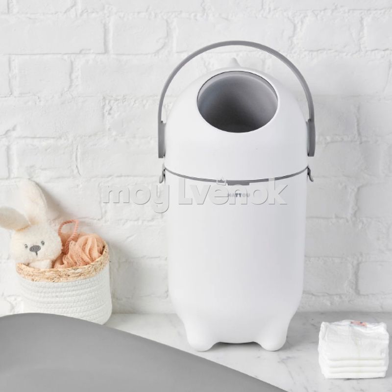 Предотвратите появление неприятных запахов в комнате благодаря накопителю для подгузников Nattou. Максимально простой в использовании: поднимите ручку, чтобы бросить подгузник в накопитель, а затем опустите ее снова, чтобы подгузник упал в мешок.