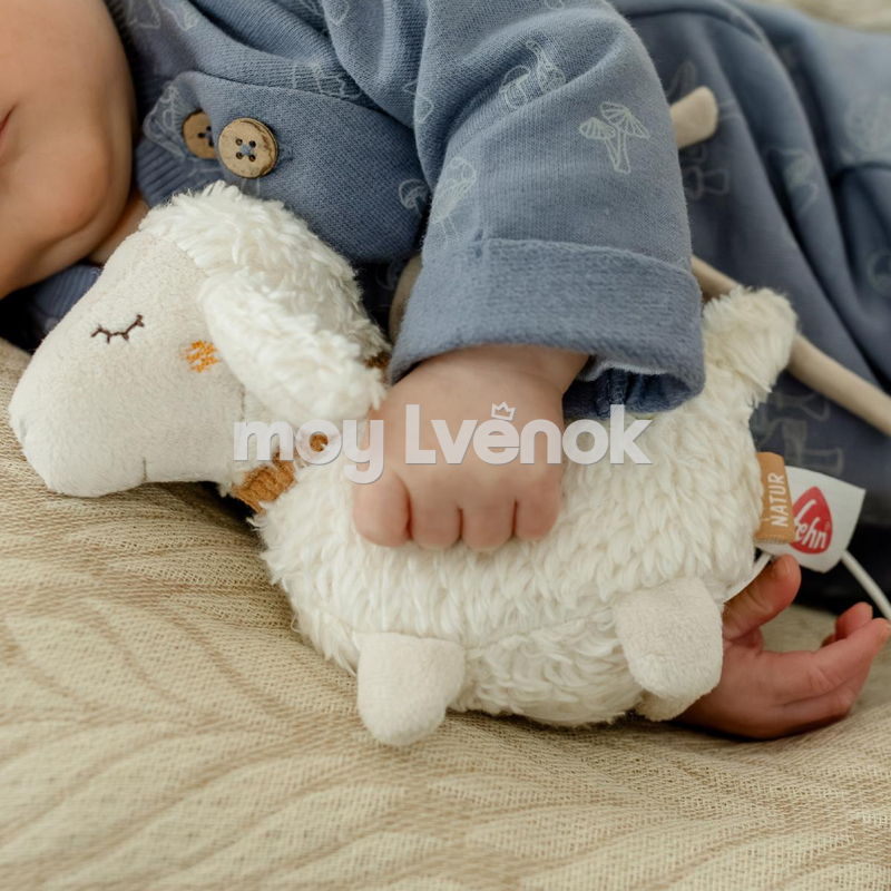 Музыкальная игрушка для засыпания в виде очаровательной овечки. Если потянуть за шнурок, она проигрывает колыбельную Брамса «Спокойной ночи» в течение 2 минут и убаюкивает маленьких мечтателей.
