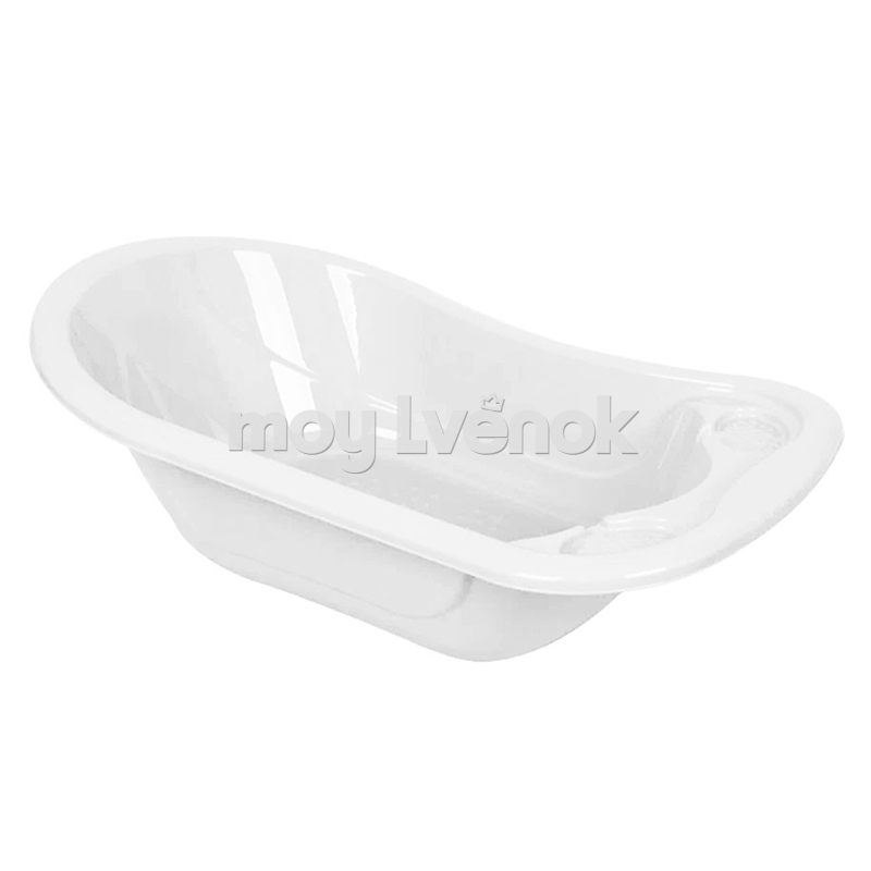 - Комфорт для мамы и малыша. Ванна имеет оптимальные размер, длинна ванночки составляет 90 см, ширина 53 см, это позволяет использовать ванну длительное время, примерно до двухлетнего возраста. Объем ванны вмещает 55 литров воды, высота бортиков 26 см. Внутренние размеры ванны по дну: длина 50 см
