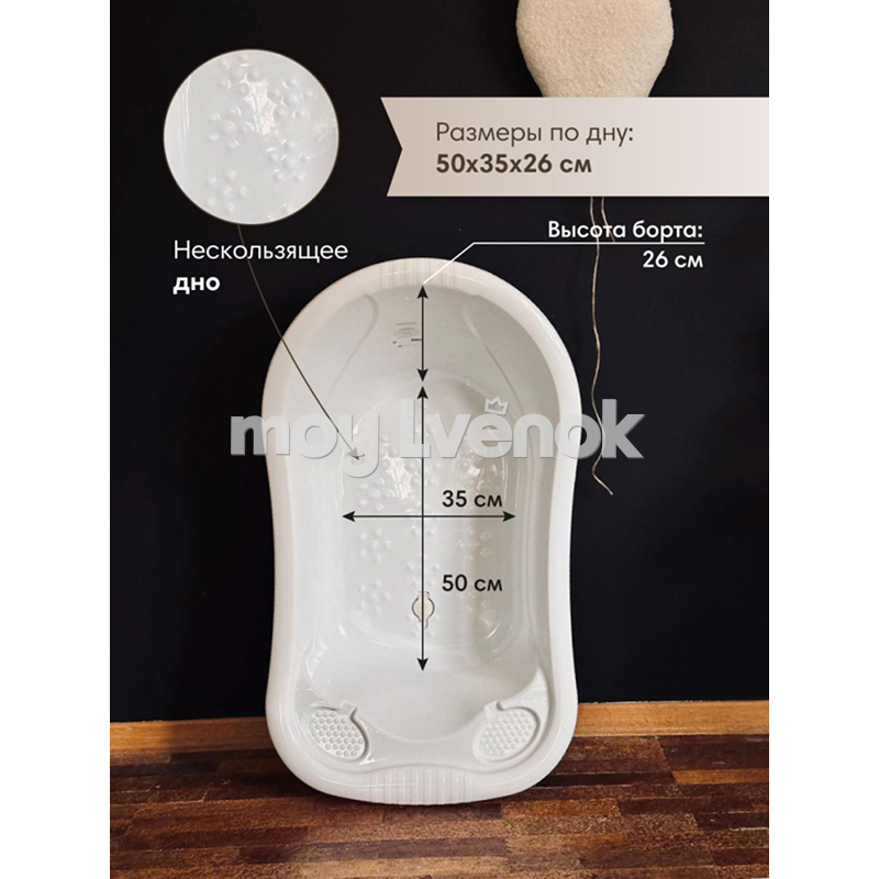 ширина 35 см. Удобная система слива поможет сэкономить время по уходу за самой ванночкой. - Прочность и износостойкость. Ванночка выполнена из плотного, цельного пластика, что делает её прочной и износостойкой.