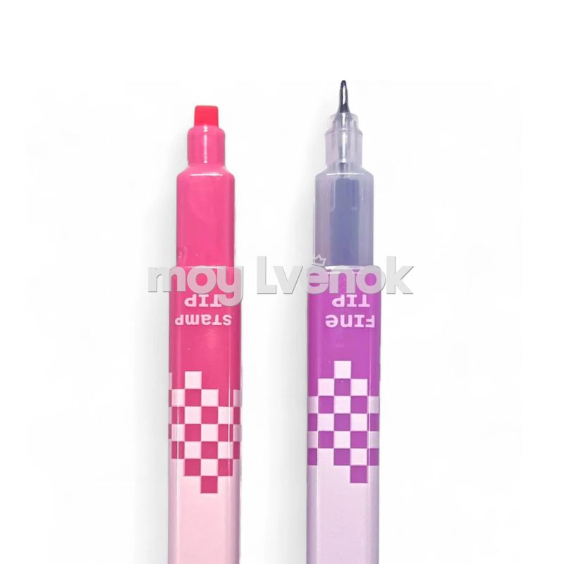 Каждый маркер имеет квадратный наконечник - штамп с одной стороны и тонкий наконечник (0,8 мм) для рисования и письма с другой.
