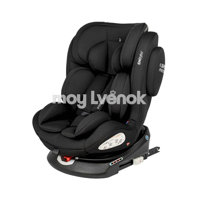 Кресло ENO360 надежно, а главное, очень просто крепится в автомобиле с помощью Isofix (изофикс) и якорного ремня.