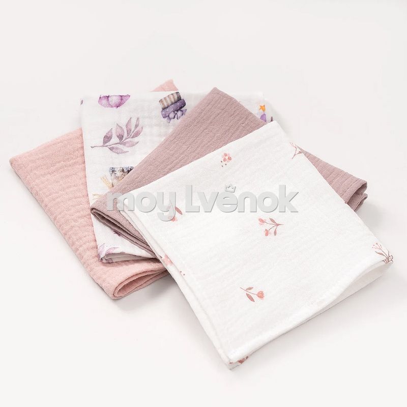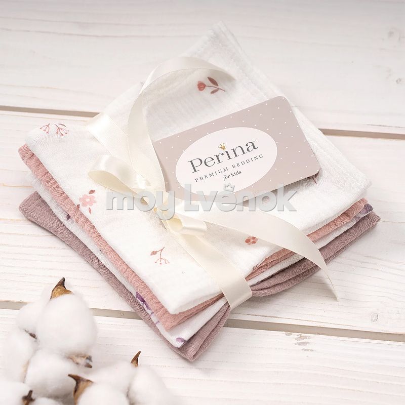 Perina Комплект муслиновых платочков-салфеток Розовый микс (4 шт)