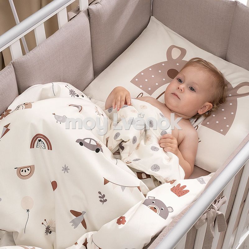 Комплект из 2-х предметов (наволочка, пододеяльник) - универсален и подходит для любых детских кроваток. Наволочка в комплекте подходит для подушек 60х40 и 40х40 см.
