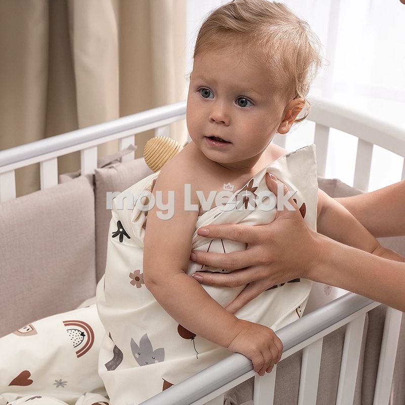 Новый стильный комплект постельного белья Bonjour Bebe из премиального сатина 300 ТС поможет погрузиться малышу в атмосферу спокойствия и волшебных грез.