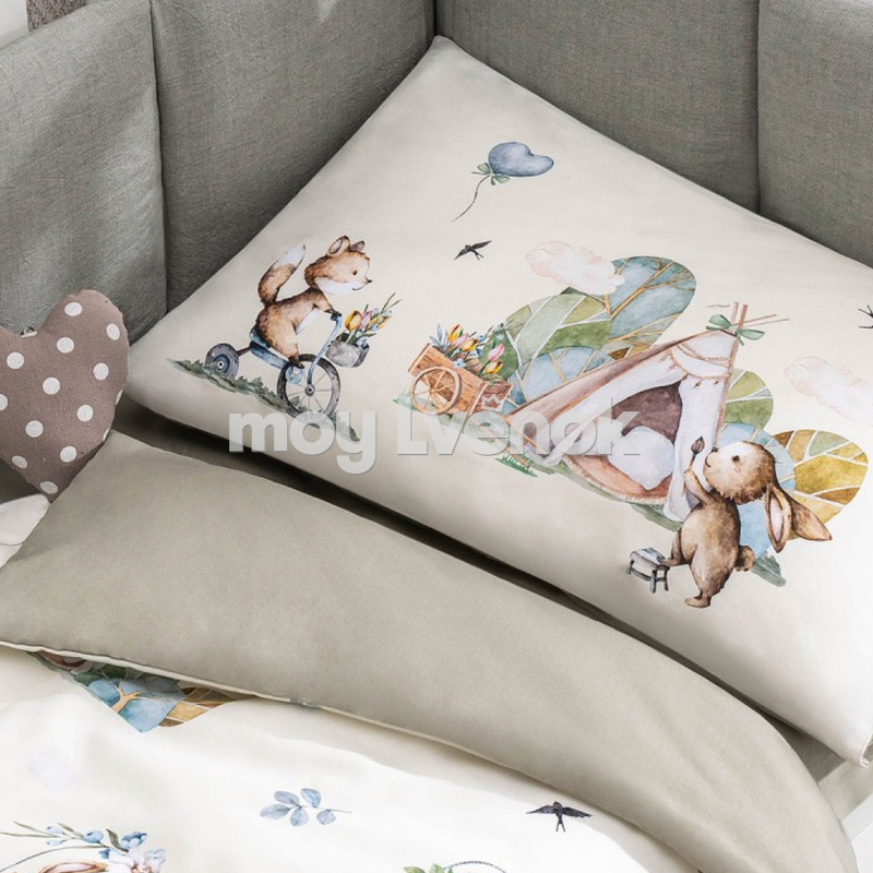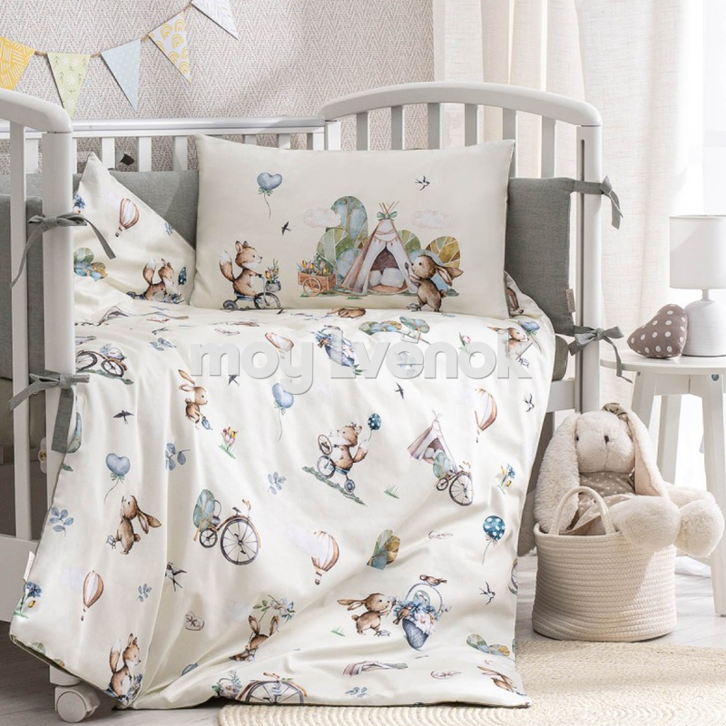 Комплект Friends идеально подходит для кроваток со спальным местом 120х60 см и 160х80 см. Светлые оттенки и спокойный рисунок впишутся практически в любой интерьер.