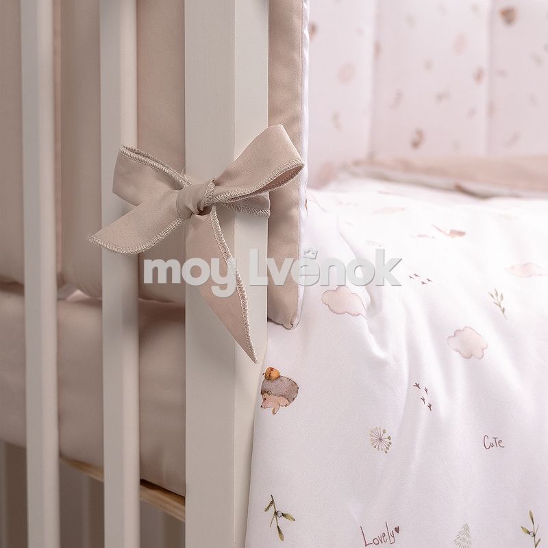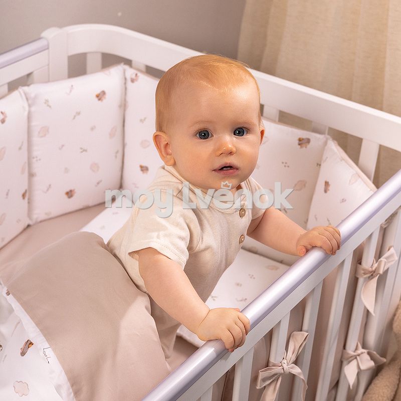- Завязки расположены с обратной стороны и надежно крепятся к прутьям кроватки, обеспечивая безопасность малыша.