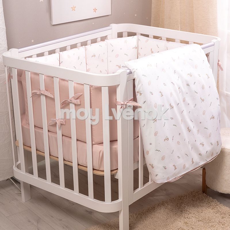 - Завязки расположены с обратной стороны и надежно крепятся к прутьям кроватки, обеспечивая безопасность малыша.