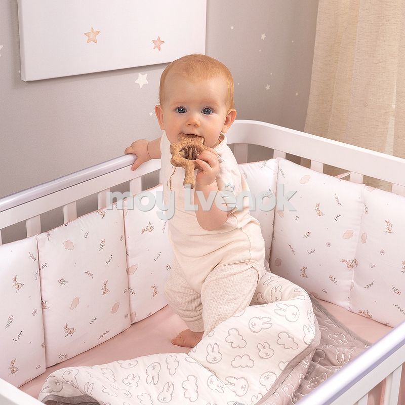 - Завязки расположены с обратной стороны и надежно крепятся к прутьям кроватки, обеспечивая безопасность малыша.
