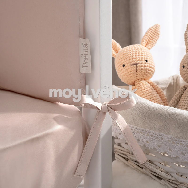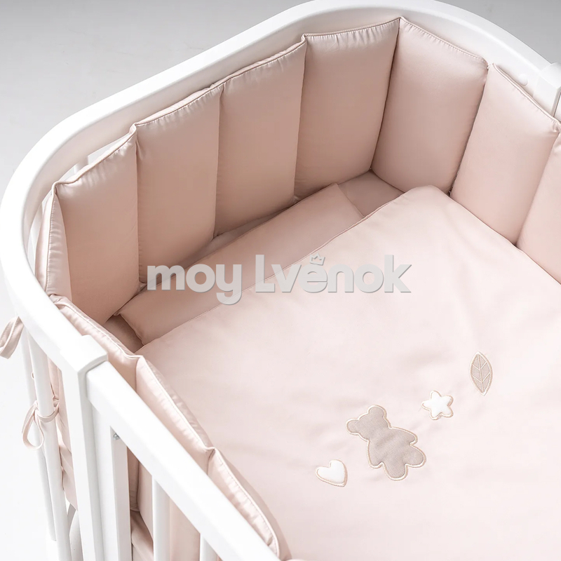Специально к этому комплекту мы разработали бортики со съемными чехлами на молнии из двух частей: первая состоит из 6-ти подушечек, вторая - из 12-ти. Сочетание натурального хлопкового сатина и воздушного гипоаллергенного наполнителя Холлкон обеспечивает еще одно полезное свойство: подушечки хорошо пропускают воздух и поддерживают температурный баланс.