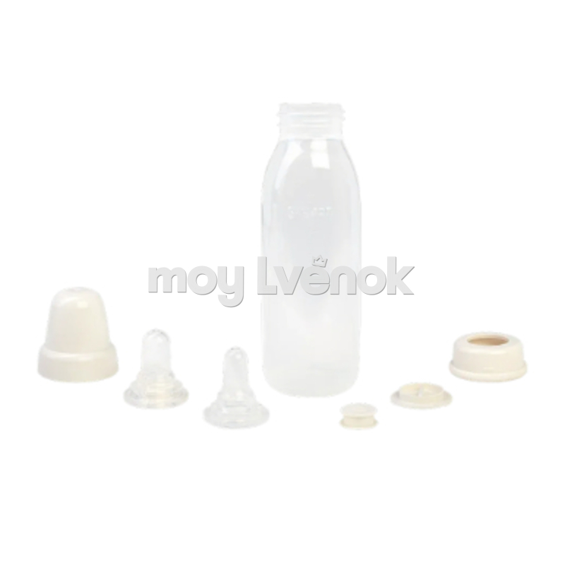 Силикон (соска), полипропилен (бутылочка, клапан, кольцо-переходник, крышка-колпачок).
