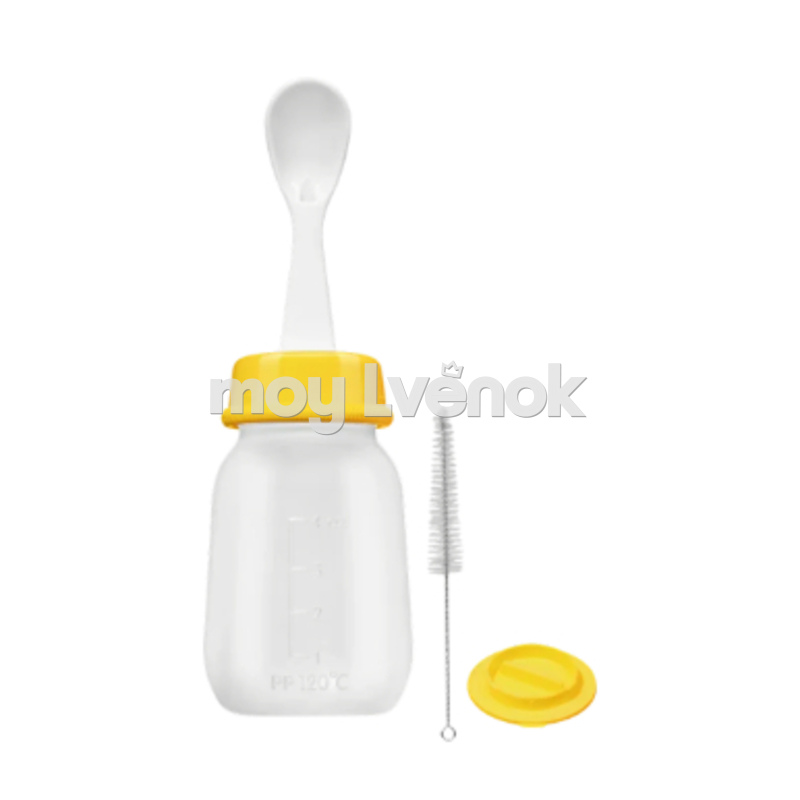 Легкое и простое решение для введения первого прикорма! Идеально для кашек, жидких пюре и другого питания. Является комбинацией бутылочки и ложки. Благодаря мягкой бутылочке и специальному желобку в ложечке, питание поступает в ложечку. Нет необходимости много раз подносить ложку ко рту. Ложечка прикручивается к бутылочке с помощью соединительного кольца, оно же служит крышкой для бутылочки. Помогает малышу быстро привыкнуть кушать из ложки. Изготовлена из безопасного материала, не содержит Бисфенол А. Рекомендуется для детей старше 3-х месяцев.