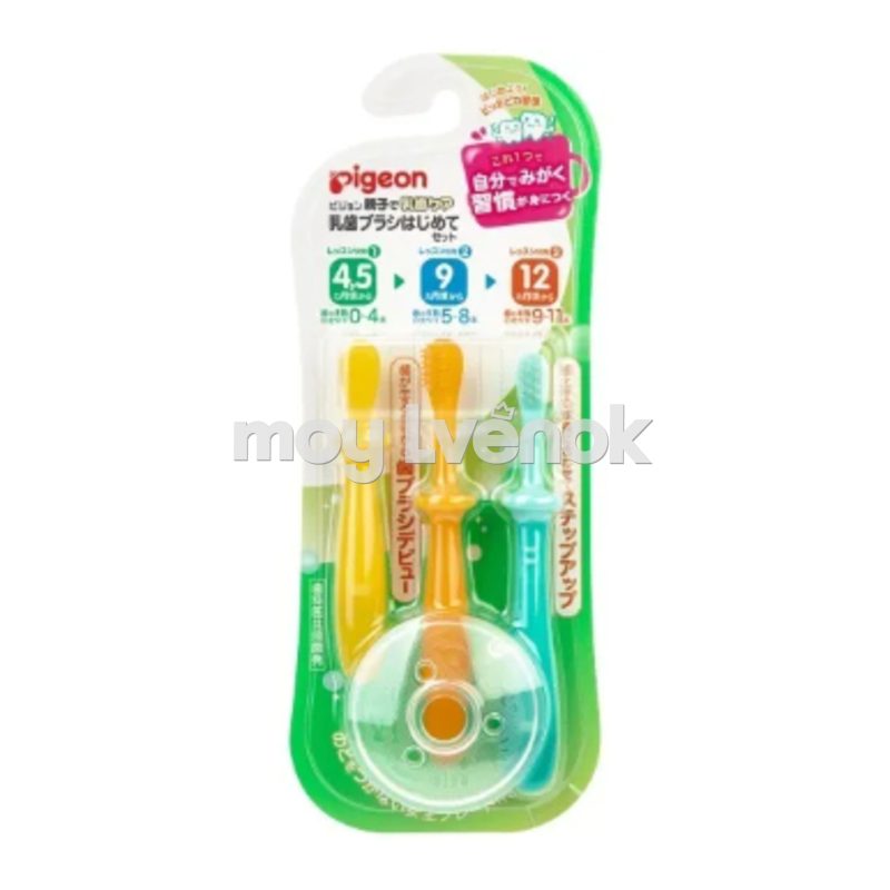 PIGEON Набор зубных щеток для детей от 4,5 мес, 3 шт (Шаг 1,2,3)
