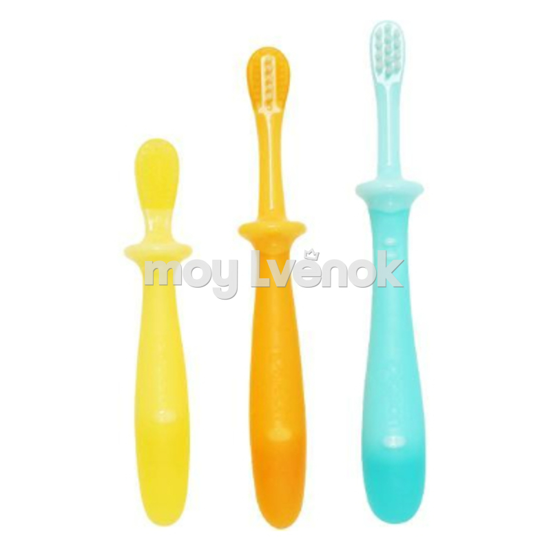 Шаг 3: тренировка самостоятельной чистки всей полости рта, с момента появления задних зубов (примерно 12—18 мес.). Мягкая щетинка очищает загрязнения, не травмируя нежную эмаль молочных зубов и дёсны. Нескользящая, мягкая, удобная для малыша ручка. Безопасное кольцо-ограничитель, которое подходит ко всем щеткам, защищает от случайной травмы. Яркий дизайн.