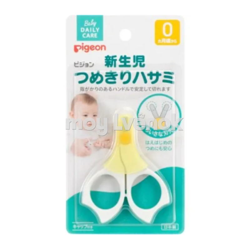 Ножнички Pigeon для детей с рождения Короткие и очень тонкие лезвия, безопасные закругленные края. Легко срезают тонкие и мягкие ноготочки младенца, не загибая их. Эргономичная ручка для надежной фиксации ножниц 3-мя пальцами. С футляром для гигиеничного хранения.