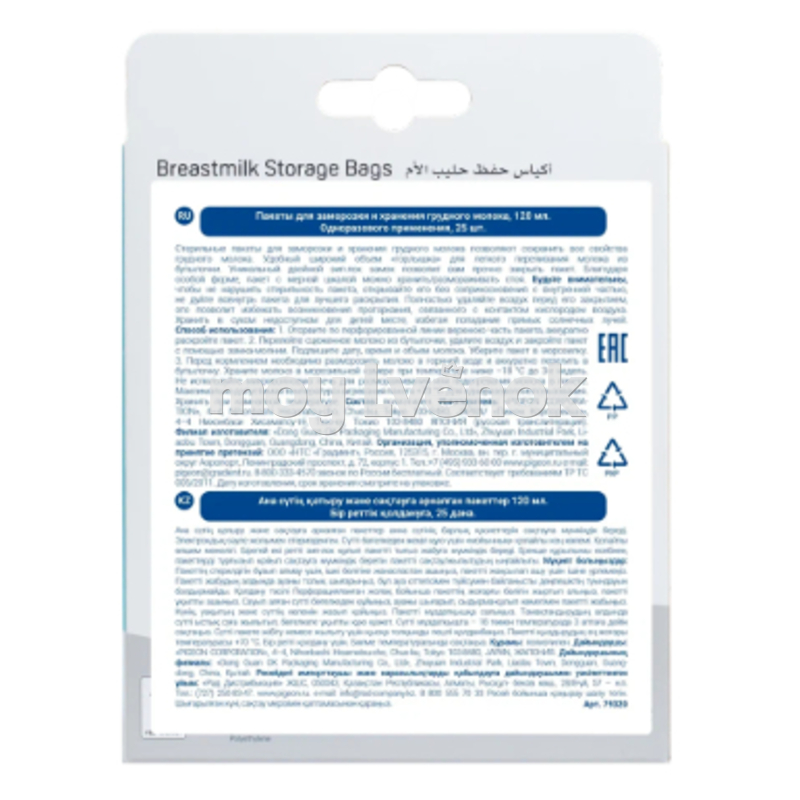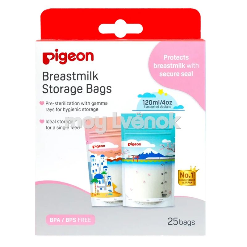 PIGEON Пакеты для заморозки и хранения грудного молока 120 мл, 25 шт, Holiday