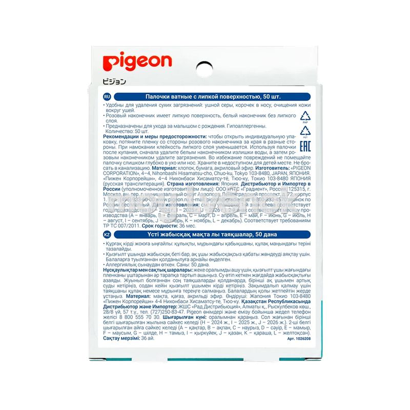 PIGEON Палочки ватные с липкой поверхностью 50шт