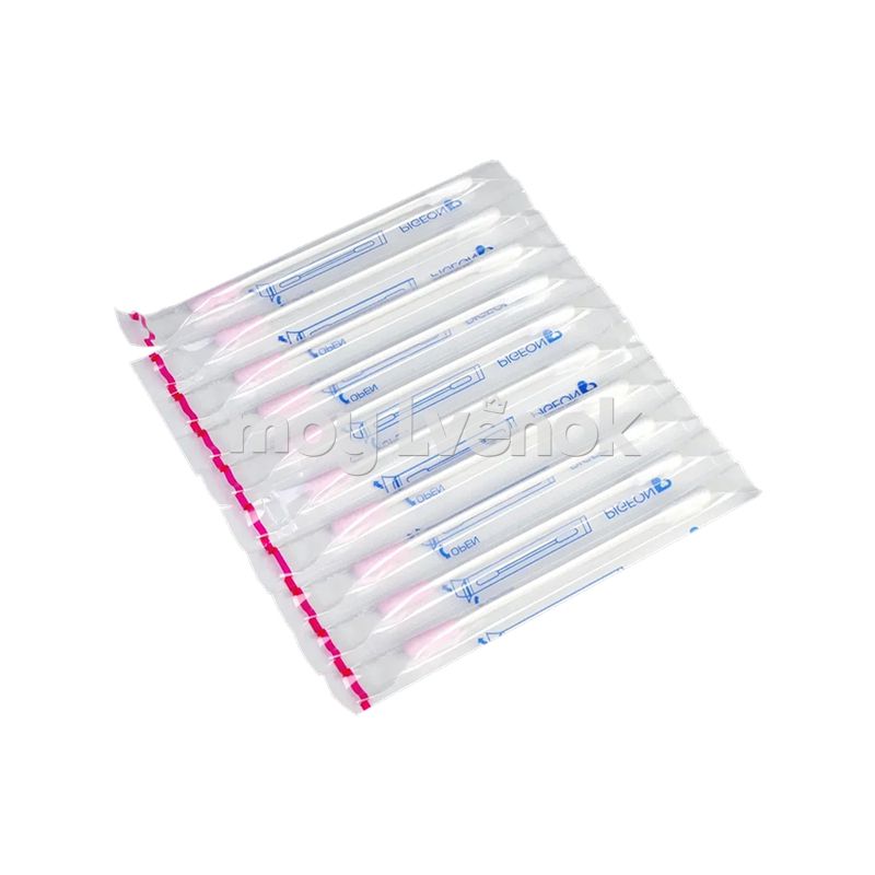 Розовый наконечник имеет липкую поверхность для быстрой гигиены новорожденного – все корочки прилипают и легко удаляются. Белый наконечник без липкого слоя – для завершающей обработки.