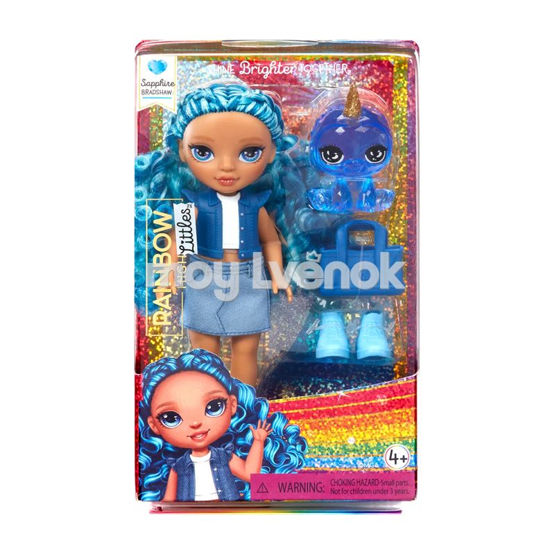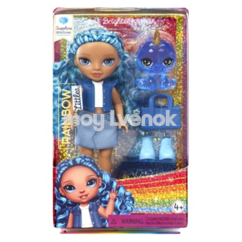 Сапфир Littles - это кукла высотой 15 см с длинными густыми прошитыми волосами, подвижными ручками и ножками. В наборе: модная кукла, комплект одежды и обуви, сумка, питомец. Собери всю коллекцию младших сестренок Литтлс и придумывай еще больше веселых игр в мире Рейнбоу Хай!