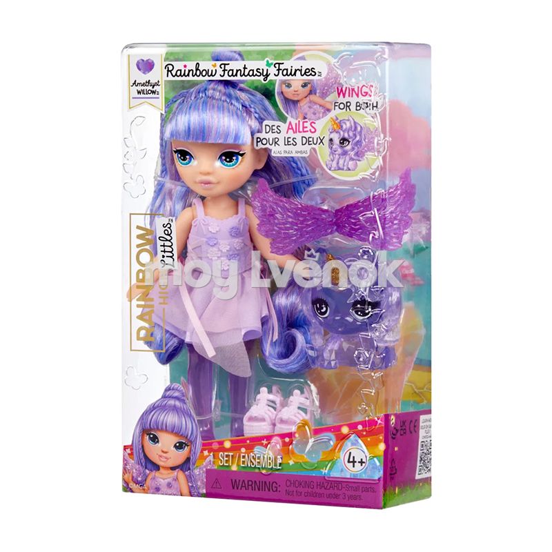 - Фэнтези Литтлс Аметист - это кукла высотой 15 см с длинными густыми прошитыми волосами, подвижными ручками и ножками. Ноги куклы сделаны из цветного прозрачного материала.