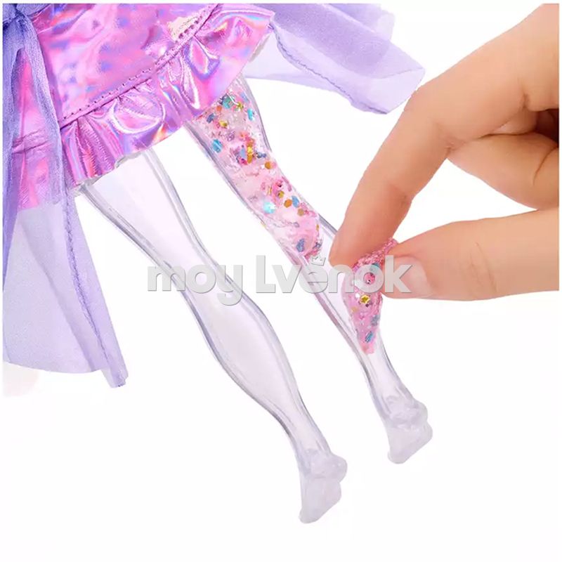 В игровом наборе: кукла высотой 28 см с длинными густыми волосами и длинными ресницами, 7 точками артикуляции; комплект одежды, пара обуви, питомец, слайм, 4 вида блесток, расческа.