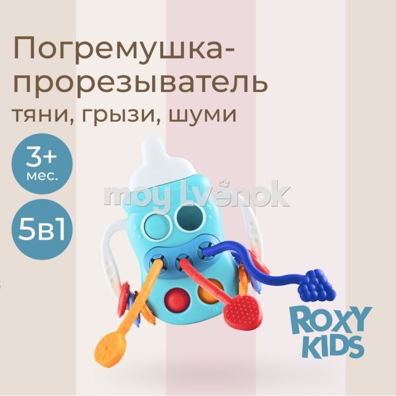 Увлекательная развивающая игрушка в форме голубой бутылочки с удобными ручками и мягкой соской.