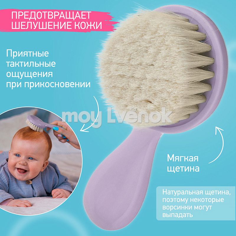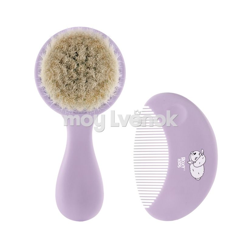 ROXY-KIDS Мягкая расческа-щетка и гребешок. Ворс из овечьей шерсти. Цвет лавандовый RBH-003-V