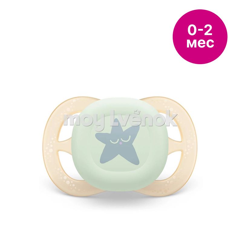 SCF076/05 Avent Пустышка ultra start ноч салат звезда 0-2мес 1шт