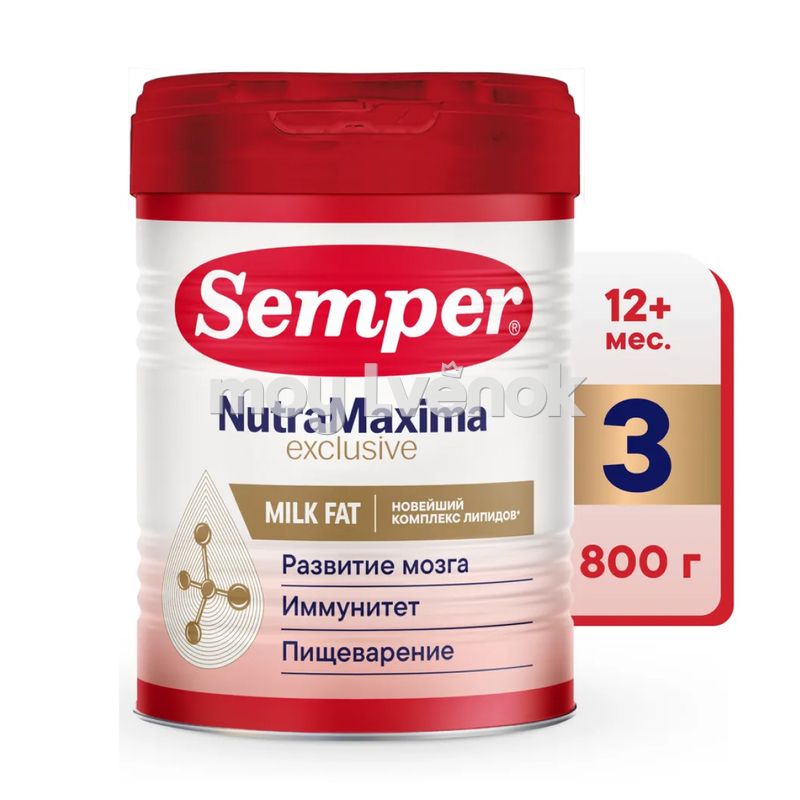 Semper NutraMaxima Exclusive 3 – формула нового поколения, которая содержит молочный жир (Milk Fat) и другие важные компоненты, входящие в состав грудного молока и обеспечивающие здоровый рост и развитие малыша: