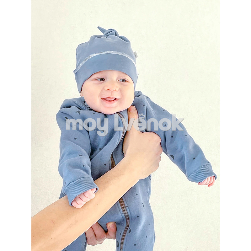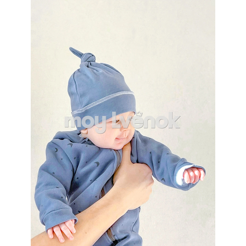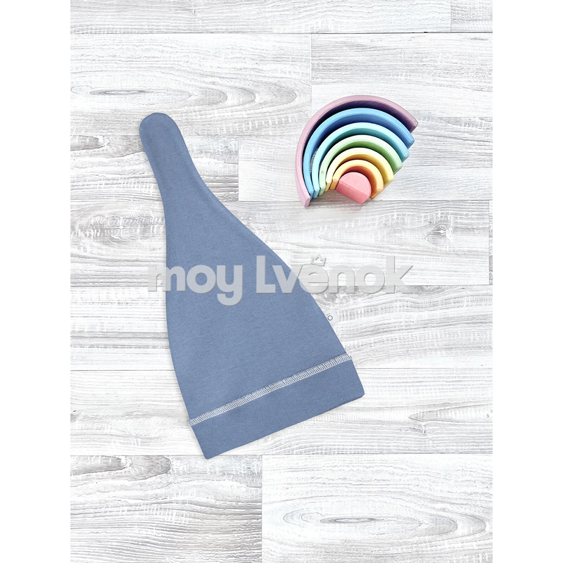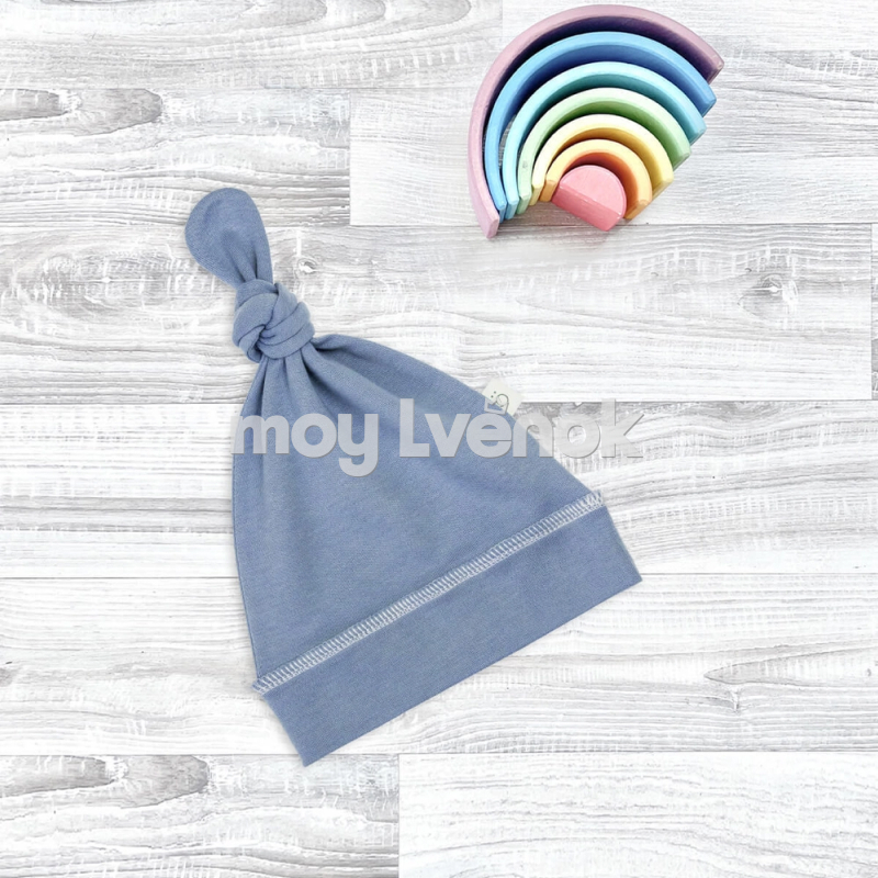 Шапочка с узелком Mjölk [мьёльк] Blue Shadow выполнена из нежного трикотажного 100% хлопка.