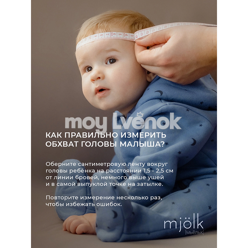 - Выбрать правильный размер поможет обхват головы ребёнка.