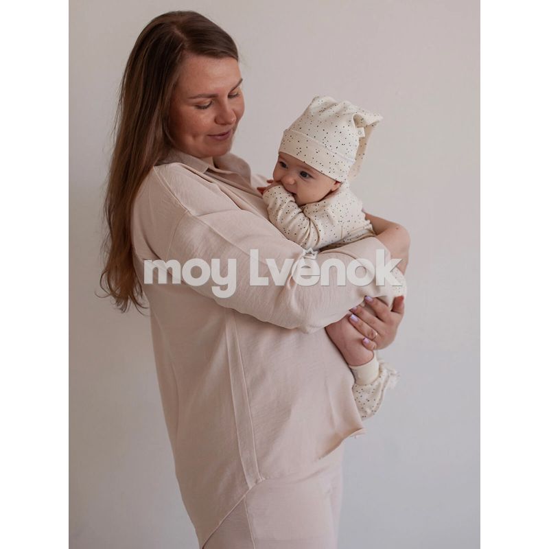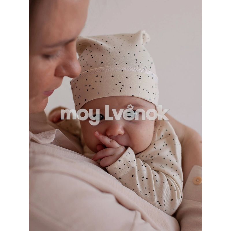 - Шапочка с узелком mjölk [мьёльк] выполнена их трикотажного хлопка, который подходит нежной коже новорожденного, не вызывает аллергии и дарит малышу комфорт.