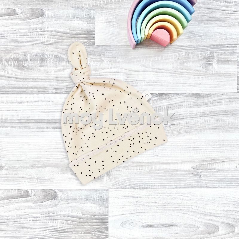 Шапочка с узелком Mjölk [мьёльк] Шоколадная крошка выполнена из нежного трикотажного 100% хлопка.
