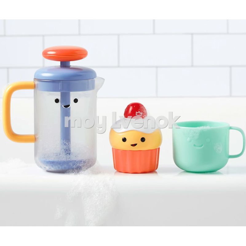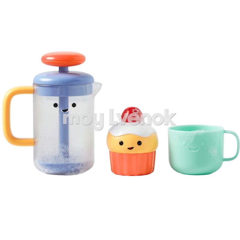 Игрушка, которую можно использовать как в ванне, так и за ее пределами! Пенообразователь, сладкий кекс, разбрызгивающий воду, и чашка - необходимые элементы для успешной вечеринки. Каждый элемент разработан, чтобы развивать координацию рук и глаз и учить причинно-следственные связи. В чашке есть отверстия на дне для наливания воды, а кекс состоит из двух частей, которые нужно соединить вместе. Создание настоящей пены - это еще и веселье для вашего малыша!