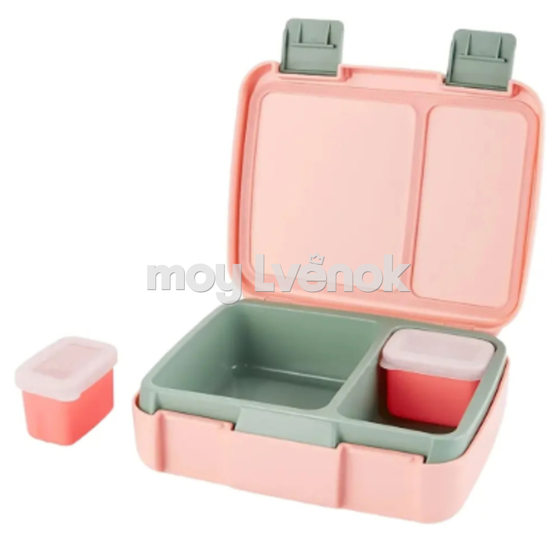 Надежное уплотнение на крышке помогает предотвратить беспорядок, а удобные для детей защелки легко открываются и закрываются маленькими ручками самостоятельно. Съемный лоток с 2 секциями удобно мыть.