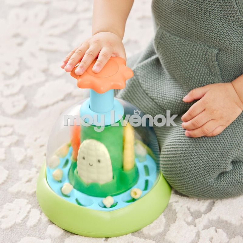 Необычная юла для малышей початками кукурузы и попкорном. Свежий взгляд на классические детские игрушки-юлы: просто нажмите на дружелюбное солнышко вверху и наблюдайте, как кукуруза вращается, подпрыгивает и хлопает. Малышу понравится изучать причину и следствие, наблюдая, как кукурузные початки подпрыгивают вверх-вниз, а попкорн подпрыгивает во все стороны. Забавные хлопающие звуки. Развивает мелкую моторику Помогает понять причину и следствие. Размер игрушки (см): 15 х 15 х 19